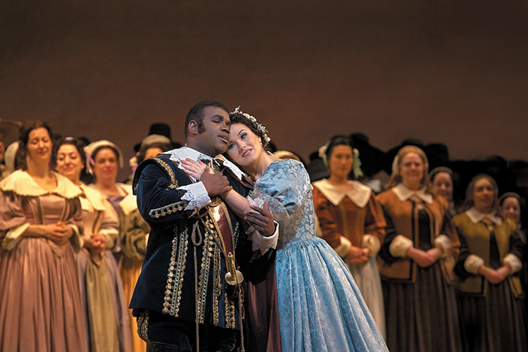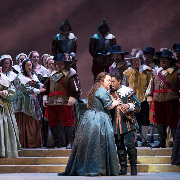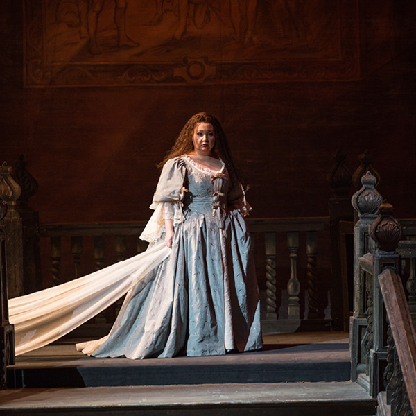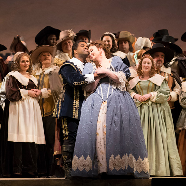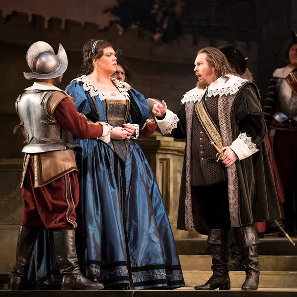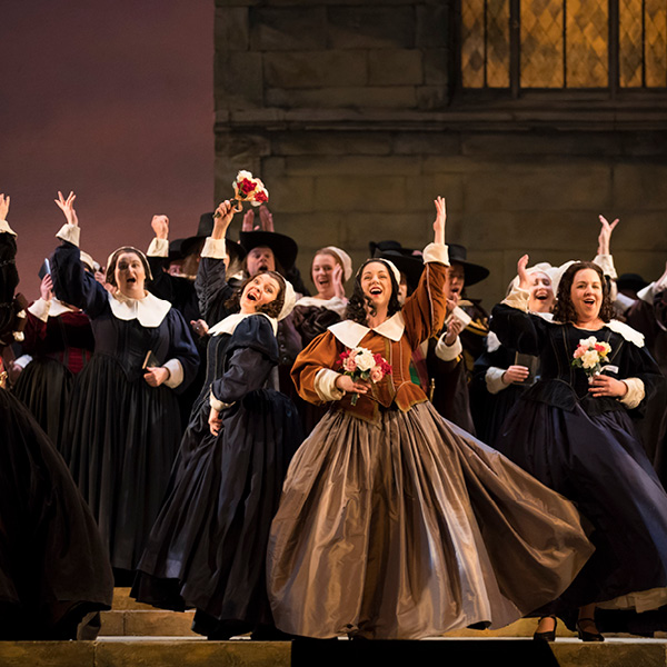 As dawn breaks, Bruno Robertson leads the Puritan soldiers in prayer before they set about their duties. Villagers enter in a festive mood and announce that it is Elvira’s wedding day. Sir Riccardo Forth appears, brooding and in despair. Lord Gualtiero Walton has yielded to his daughter Elvira’s wish to marry Lord Arturo Talbot, a royalist opposed to Cromwell and the Puritan cause. Lord Walton has thus broken his promise to Riccardo that Elvira should be his bride. Bruno’s attempts to comfort the rejected suitor are to no avail. Riccardo laments his lost happiness.