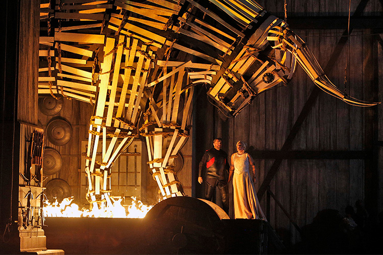 Near a forest at night, the priest Oroveso leads the Druids in a prayer for revenge against the conquering Romans. After they have left, the Roman proconsul Pollione admits to his friend Flavio that he no longer loves the high priestess Norma, Oroveso’s daughter, with whom he has two children. He has fallen in love with a young novice priestess, Adalgisa, who returns his love.