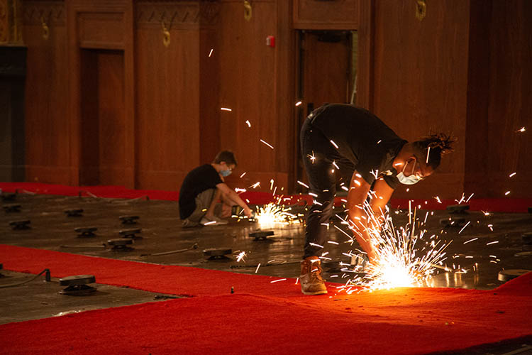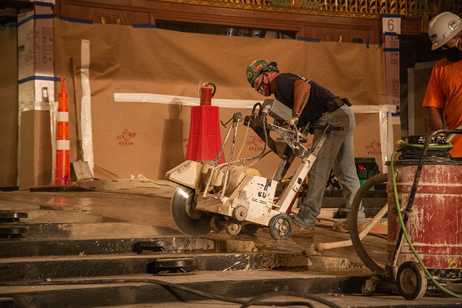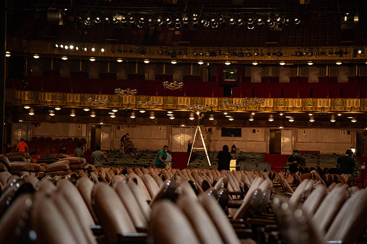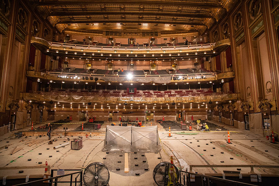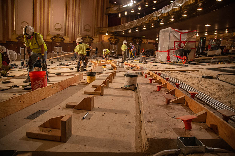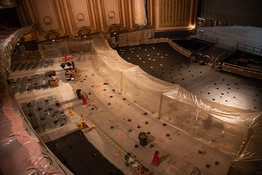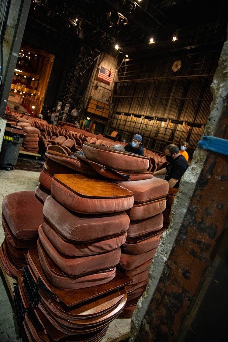 Renovations were originally set to begin on June 30, immediately following the final performance of 42nd Street, and conclude just before Opening Night of our 2020/21 Season in September. However, when the realities of COVID-19 came crashing down last spring, we were forced to develop multiple contingency plans to ensure the project's continuation while also protecting the health of everyone involved. The project was in a constant state of flux from March 13 through June 15, as we made adjustments to our construction and work schedules as well as to our site safety plans in accordance with city and state mandates.