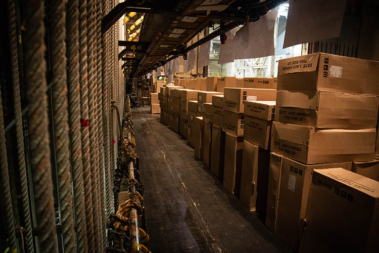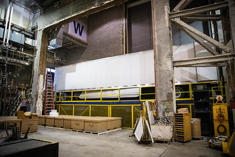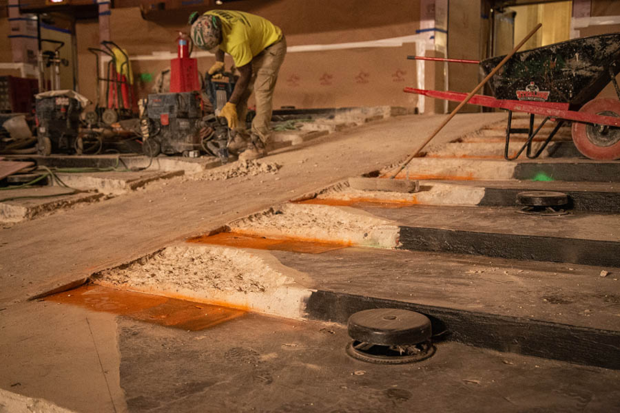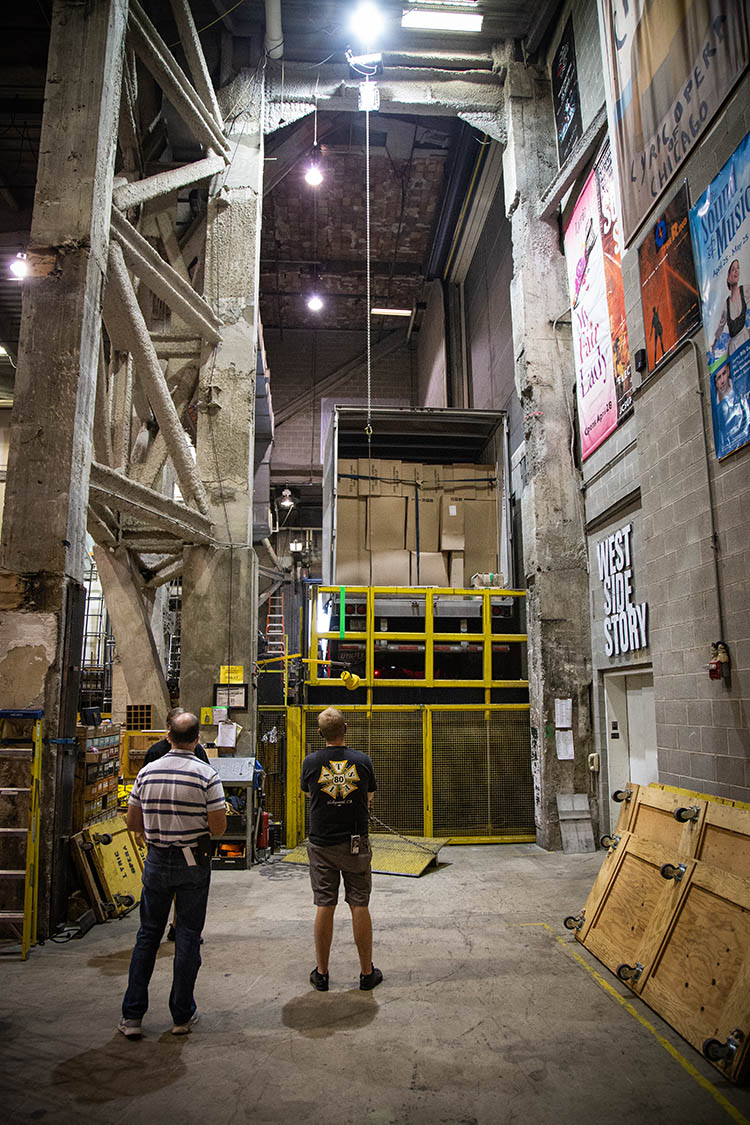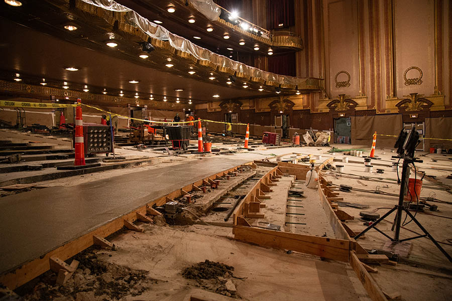 During September, contractors loaded in eight concrete trucks—each weighing roughly 55,000 pounds—through the scenery and handling area.