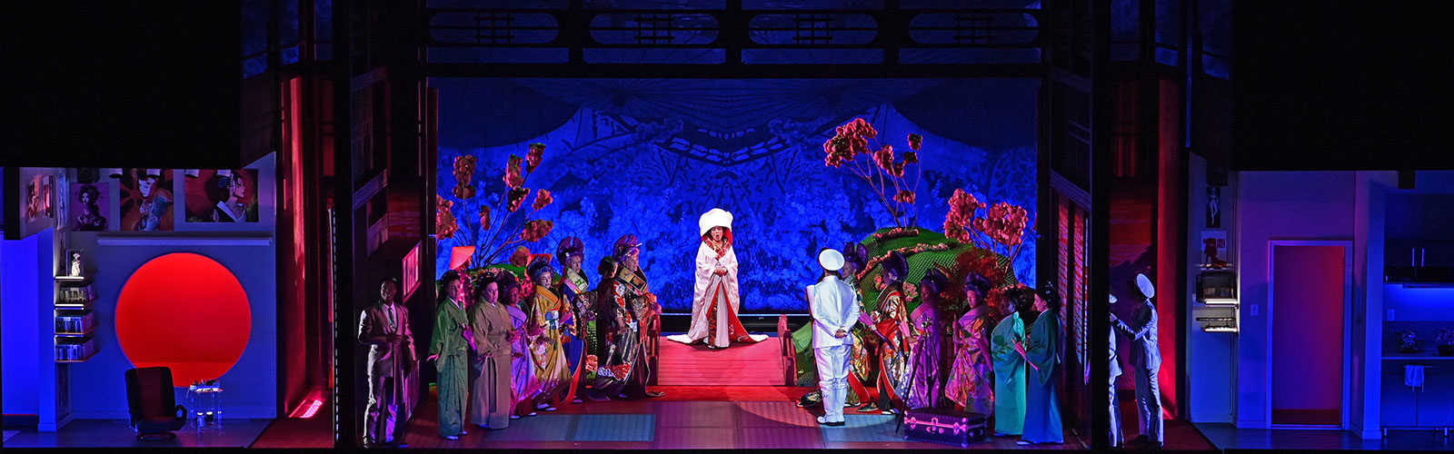 This new production of Madama Butterfly reclaims the opera's narrative through the lens of an entirely Japanese and Japanese American creative team and amplifies the voices of an entirely female Japanese design collective. Together, we have grappled with the challenges of presenting this work for diverse American audiences. Just as Butterfly is trapped with little agency in the opera, we as Asian Americans have been trapped by many of the traditional depictions of Butterfly's story. We seek now to release this opera's wings for all to experience anew. To do this, we own that the fantasy of Butterfly that we have come to love is a Western fantasy. Instead of pretending that Butterfly is representative of our Japanese American identity, our production aims to amplify that her story has been seen through the lens of a white man, Pinkerton.