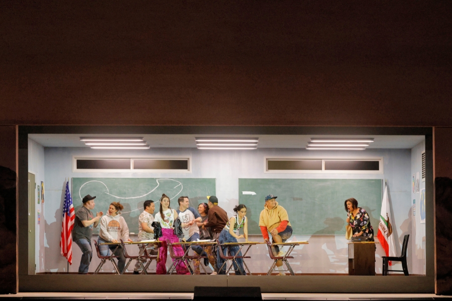 Geoffrey Agpalo at the head of the class in Lyric's 2024/25 production of The Listeners.