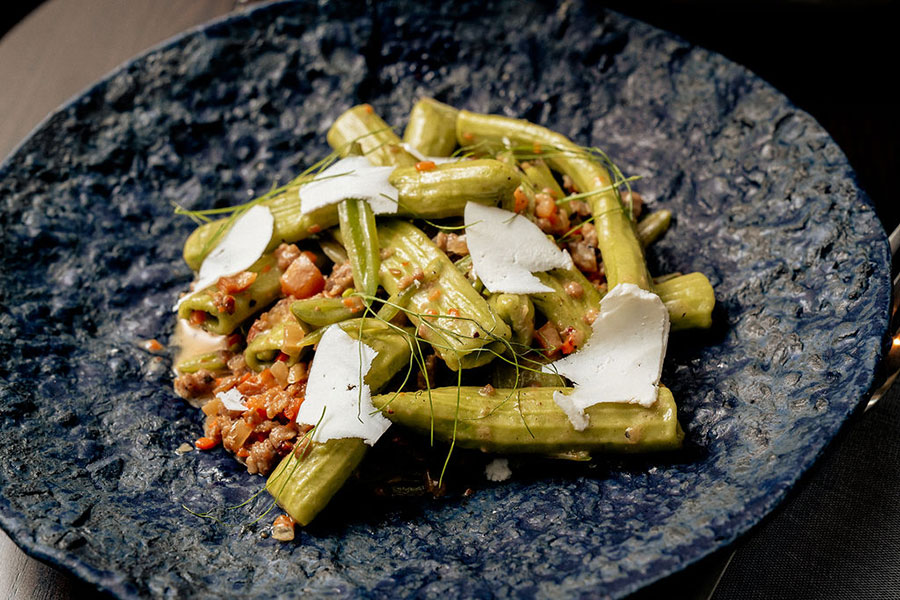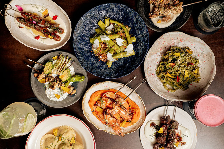 The kitchen at Eaves is led by Chef Amanda McLemore, who has spent the past several years heading up the culinary program at The Florian inside Lyric. Drawing from French, Italian, and Spanish café culture, the menu features handmade pastas, arrosticini skewers, sandwiches, and salads. Designed for everything from a casual business lunch to after-work cocktails or pre-show small plates, Eaves offers a flexible, approachable dining experience across lunch, happy hour, and dinner.