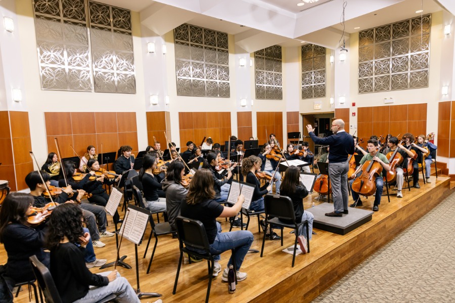 Conservatory students from Merit School of Music work with Music Director Enrique Mazzola during his annual residency.