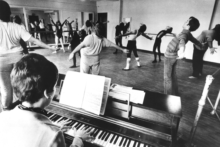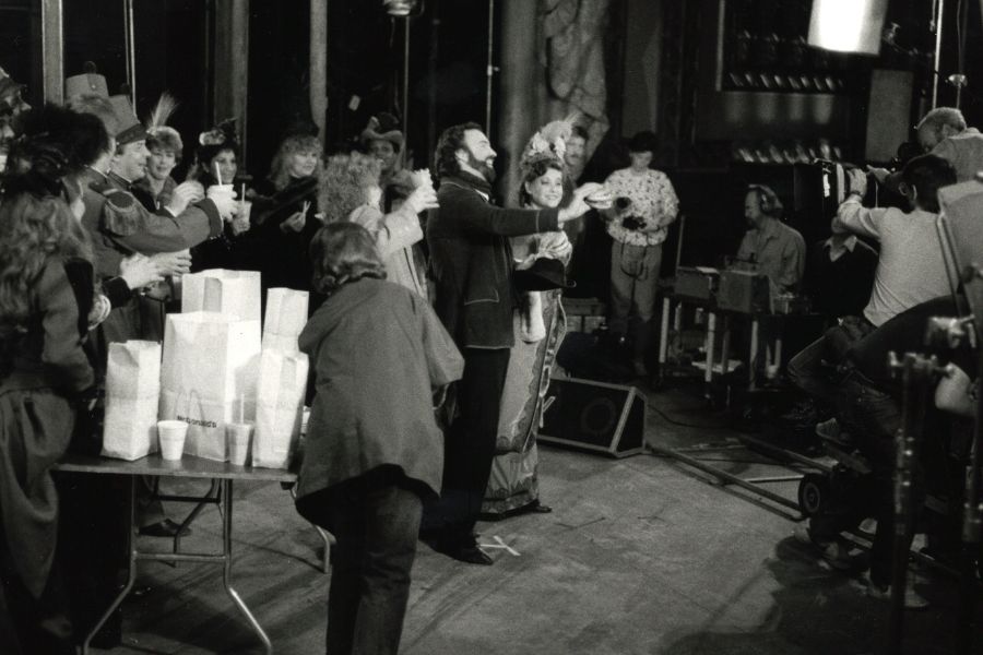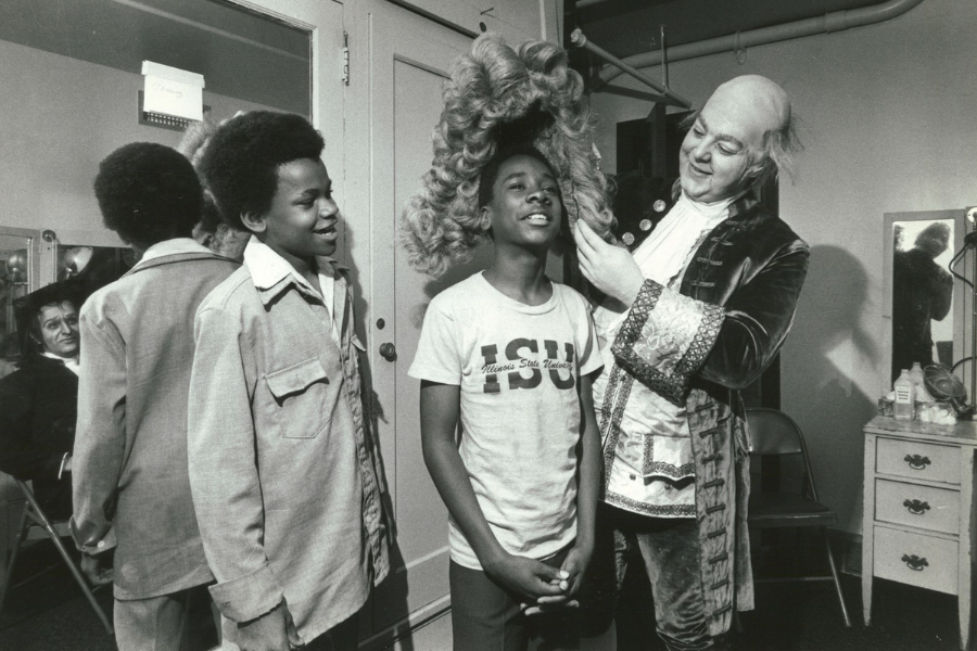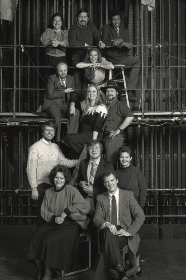 Backstage at the Civic Theatre, for a 1977 performance of The Barber of Seville for students.