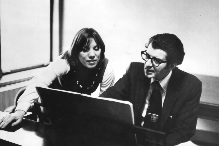 Ensemble member Patricia Guthrie (1973-74) with Chorus Master Giulio Favario.