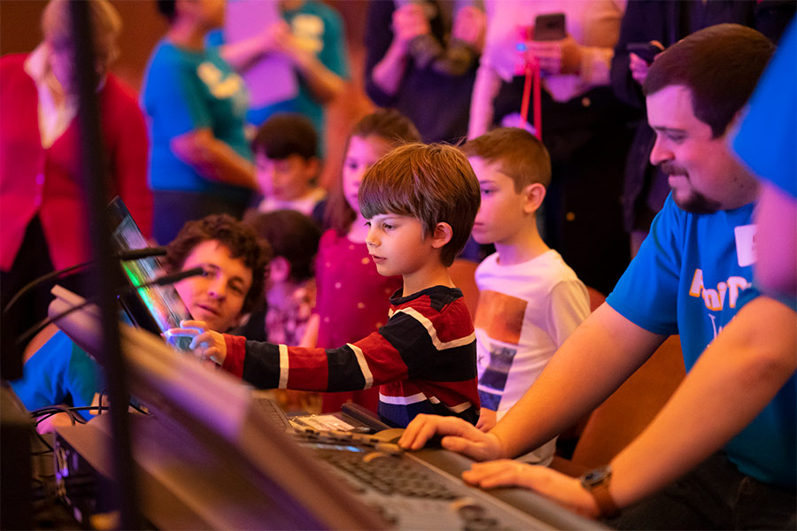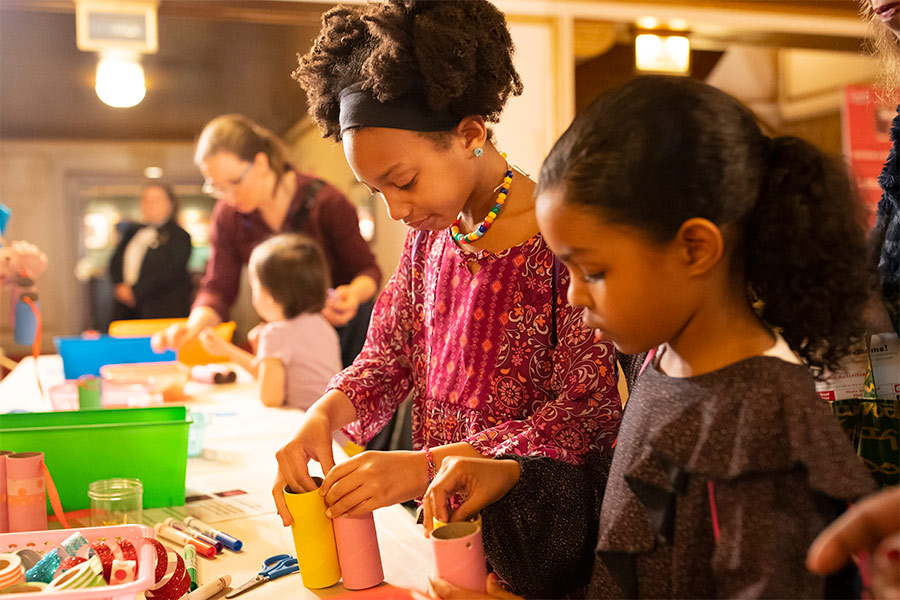 Young guests enjoy hands-on activities in the opera house at Lyric Unlimited's 2019 Family Day, now called Explore Your Lyric.