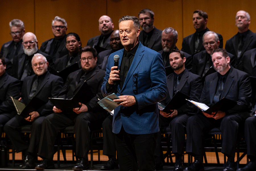 Choral Director and Head of Music Michael Black, addressing the audience at a recent performance of Great Choral Works.