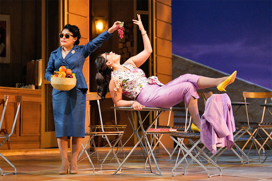 While prop food can be used to enhance a scene, we frequently use real food on stage if a singer is scripted to interact with it in some way. Any time we use real food on stage, we have to ensure that it's prepared safely and fits within the dietary restrictions of the singer and any nearby performers. Each show is different, but we always make sure to gather pertinent information and ensure safety through proper sanitary and hygienic practices. We also typically have to assess the individual production and what is needed from the food on stage to determine whether real or prop items would be more appropriate.