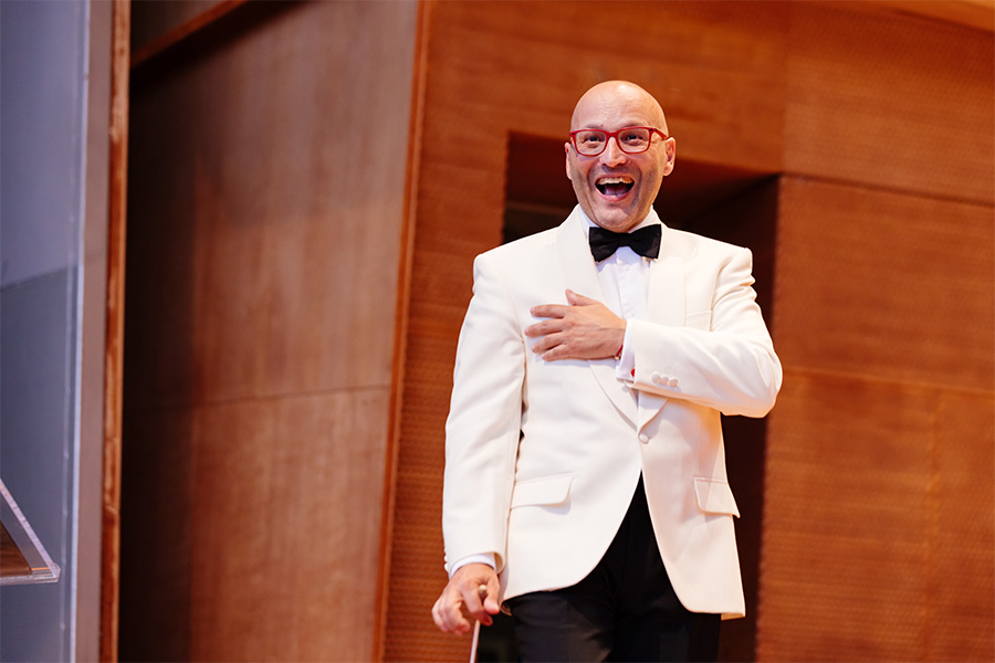 Music Director Enrique Mazzola is all smiles as he takes the stage at Sunday in the Park with Lyric in 2024. This September, Maestro Mazzola shares the podium with Ryan Opera Center conductor Chi-Yuan Lin, showcasing the next generation of opera talent.
