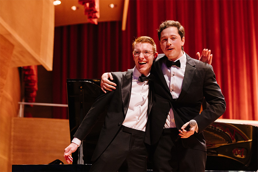 Ryan Opera Center pianist Michael Banwarth and bass-baritone Finn Sagal celebrate a job well done!