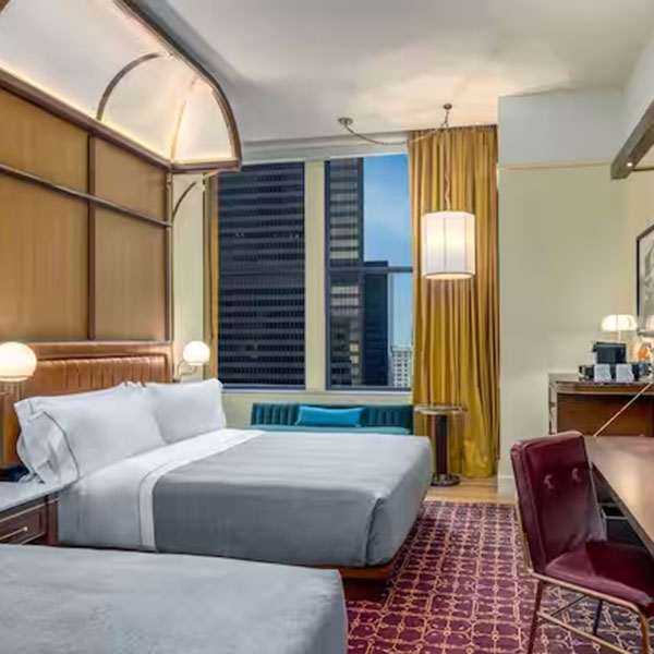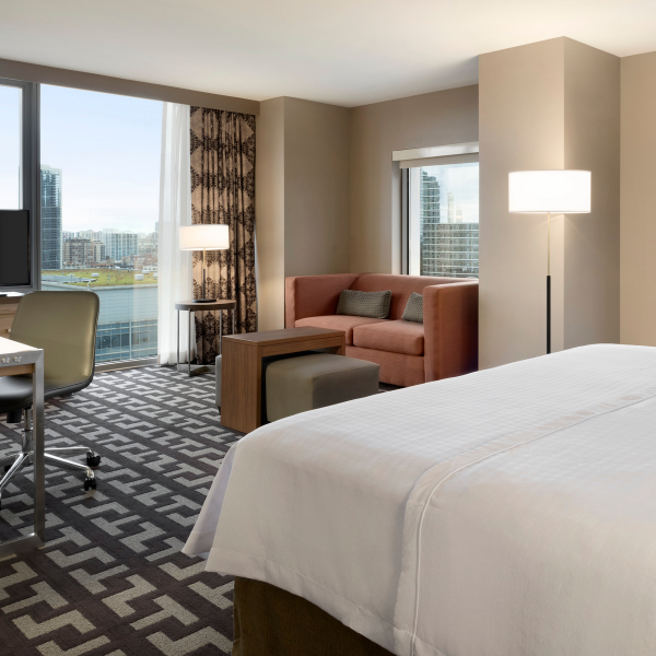 Rates include high speed WiFi throughout the property, access to a 24/7 fitness center, a full-service bar, and an indoor heated pool. Every guest room includes a Cozy Corner sofa sleeper, complimentary coffee, a 42" HDTV, and mini refrigerator.