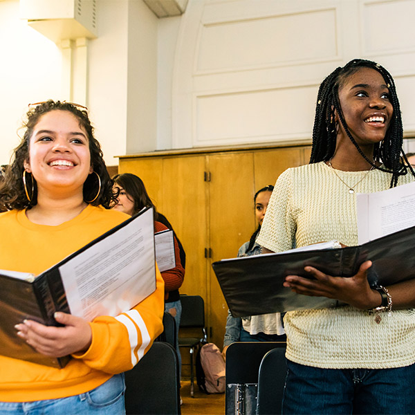 The High School Choir Residency supports vocal instruction in high school (grades 9-12) choir programs by providing regular, year-round assistance from a Lyric professional teaching artist. Teaching artists work collaboratively with choir teachers to deliver student instruction and foster student artistic growth. The program features several integrated components: